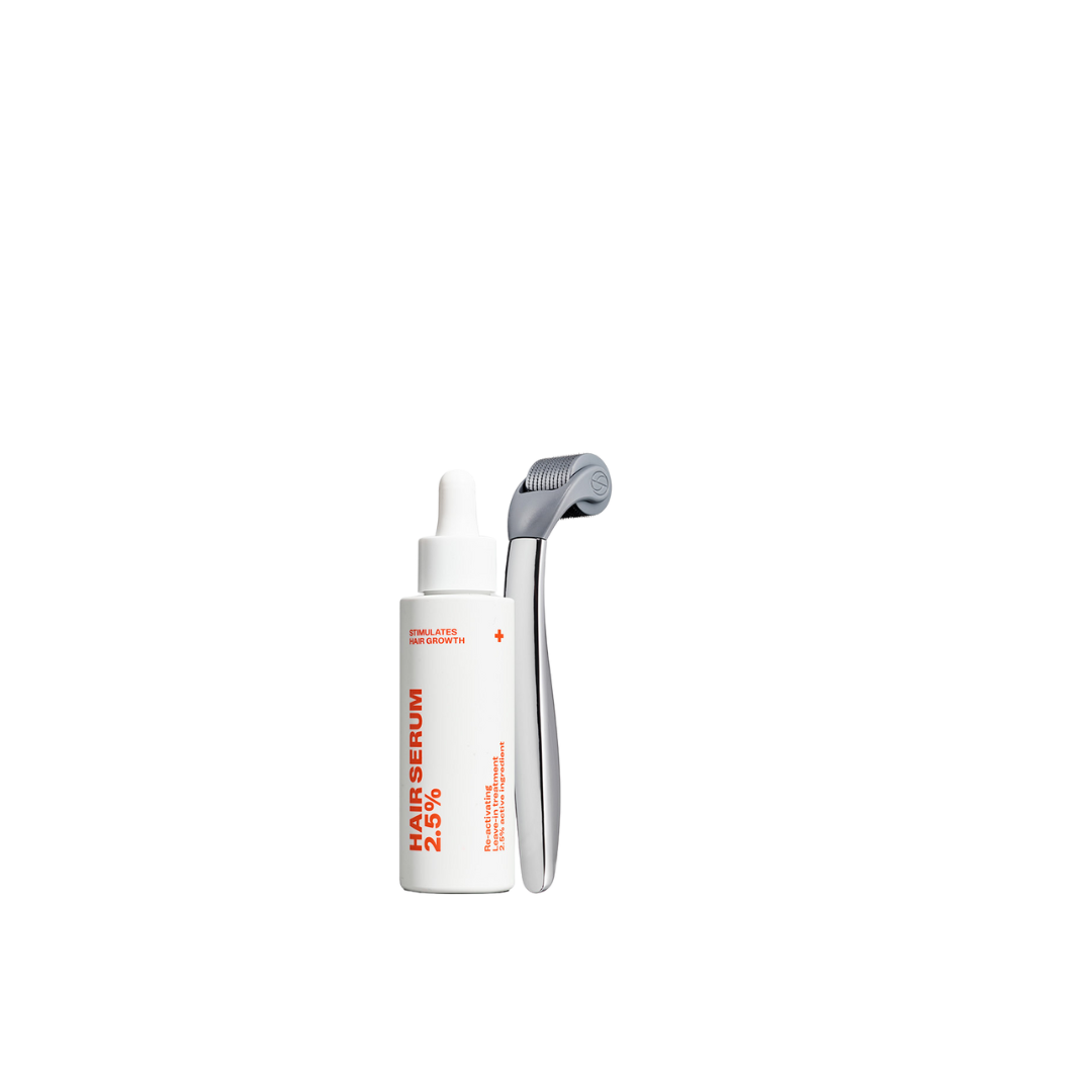Hair Growth Set contains our award-winning Skin Roller and our innovative active treatment Hair Serum 2.5%. Together, they work effectively to stimulate cell renewal and hair follicles to promote hair growth and can reduce hair loss.