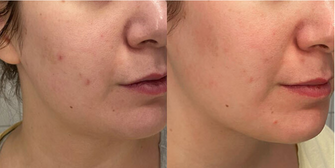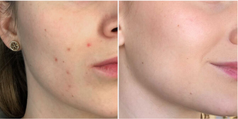 The blemishes and red spots are significantly reduced, and the overall skin tone appears more even and vibrant. The texture is also improved, giving a healthier and more refined appearance.